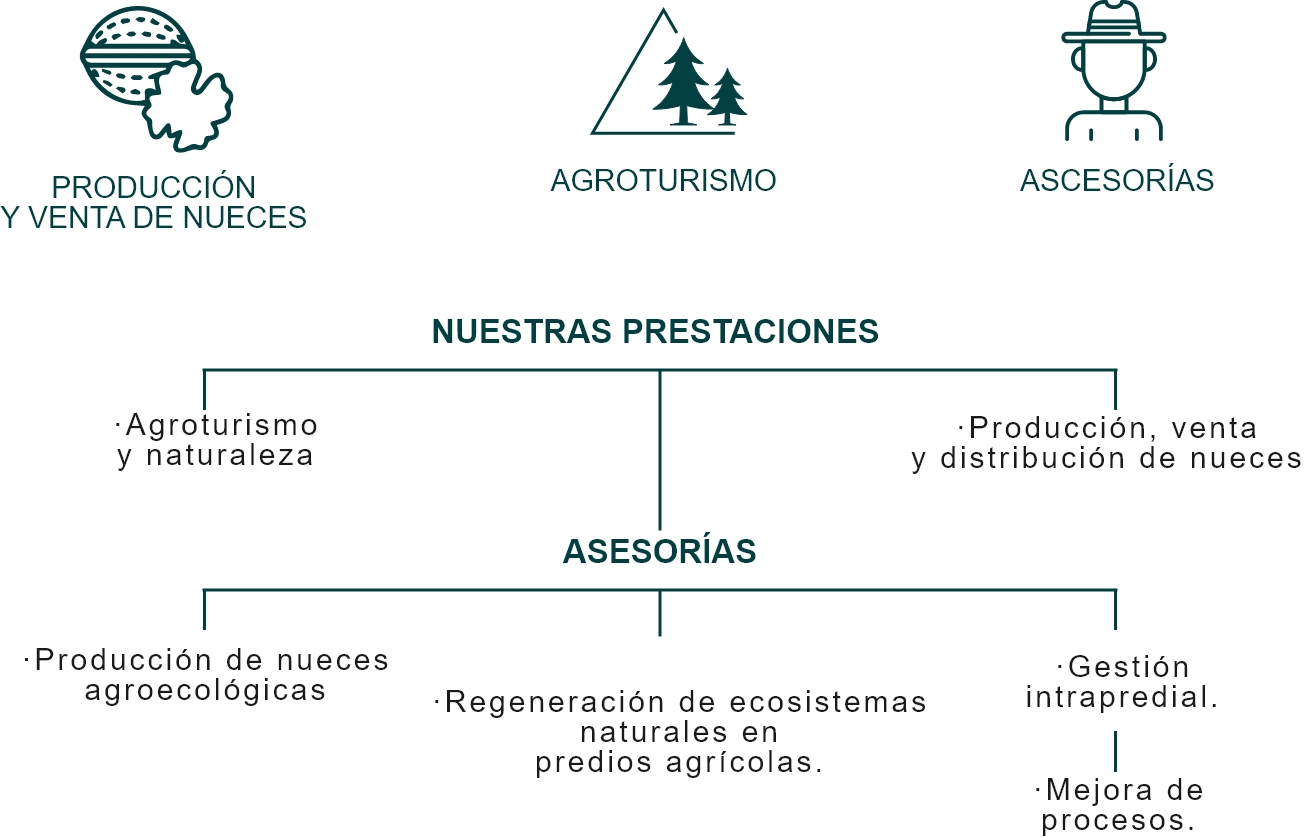 Durante el transcurso del tiempo, en la búsqueda y aplicación constante de mejoras en los procesos productivos, nos transformamos en agentes de cambio, contribuyendo a la mejora e innovación de procesos y gestión intrapredial, con foco especial en pequeños productores de nuez.
